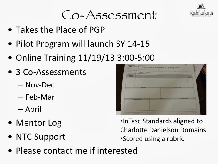 Three mentors from Central District North will be piloting the New Teacher Center Co-Assessment with their Beginning Teachers. We participated in a web conference today and are eager to start! Technology is amazing!!!